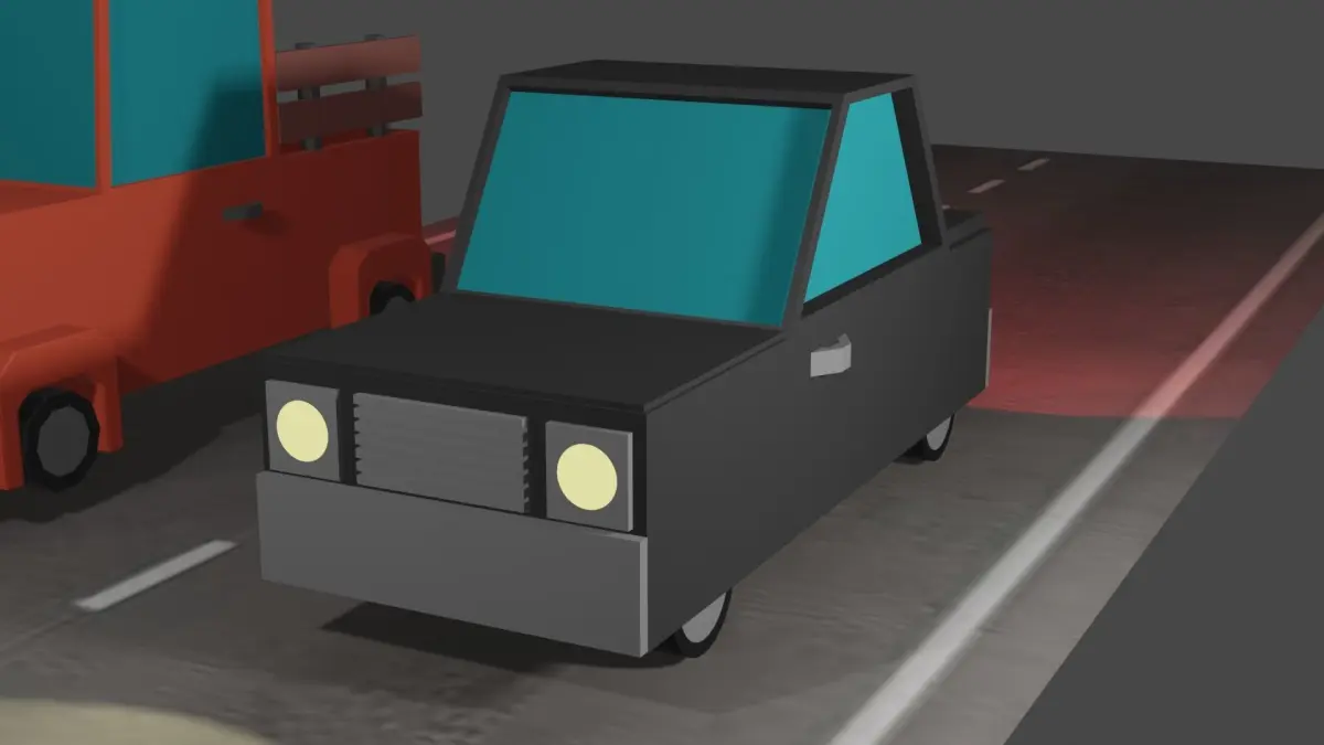 two low poly cars made on blender. One red pickup an one black car.This cars have lights so you can see them in dark. This cars are low poly so they don't need much space.