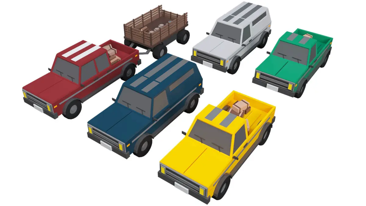 - This Collection contains low-poly cars, trucks, tyres, tractors, pickups