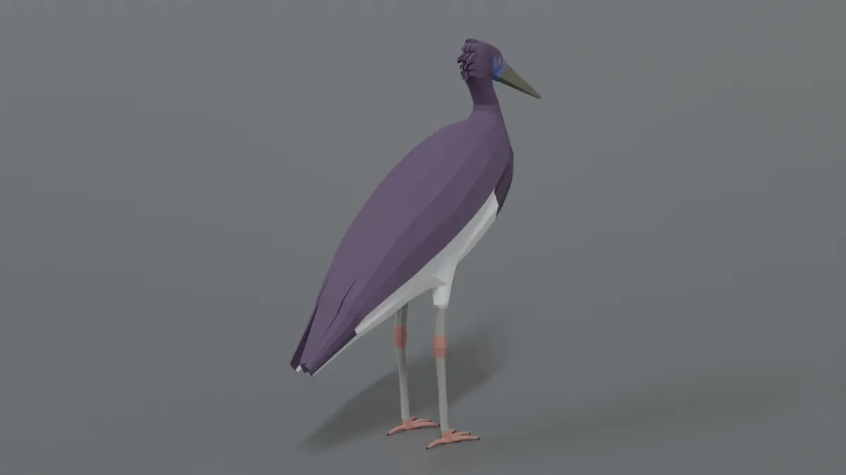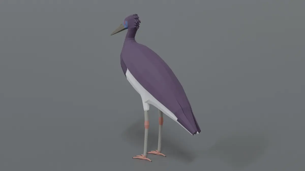 This is a low poly 3D model of an Abdim Stork. The low poly stork was modeled and prepared for low-poly style renderings, background, general CG visualization presented as 2 meshes with quads/tris.
