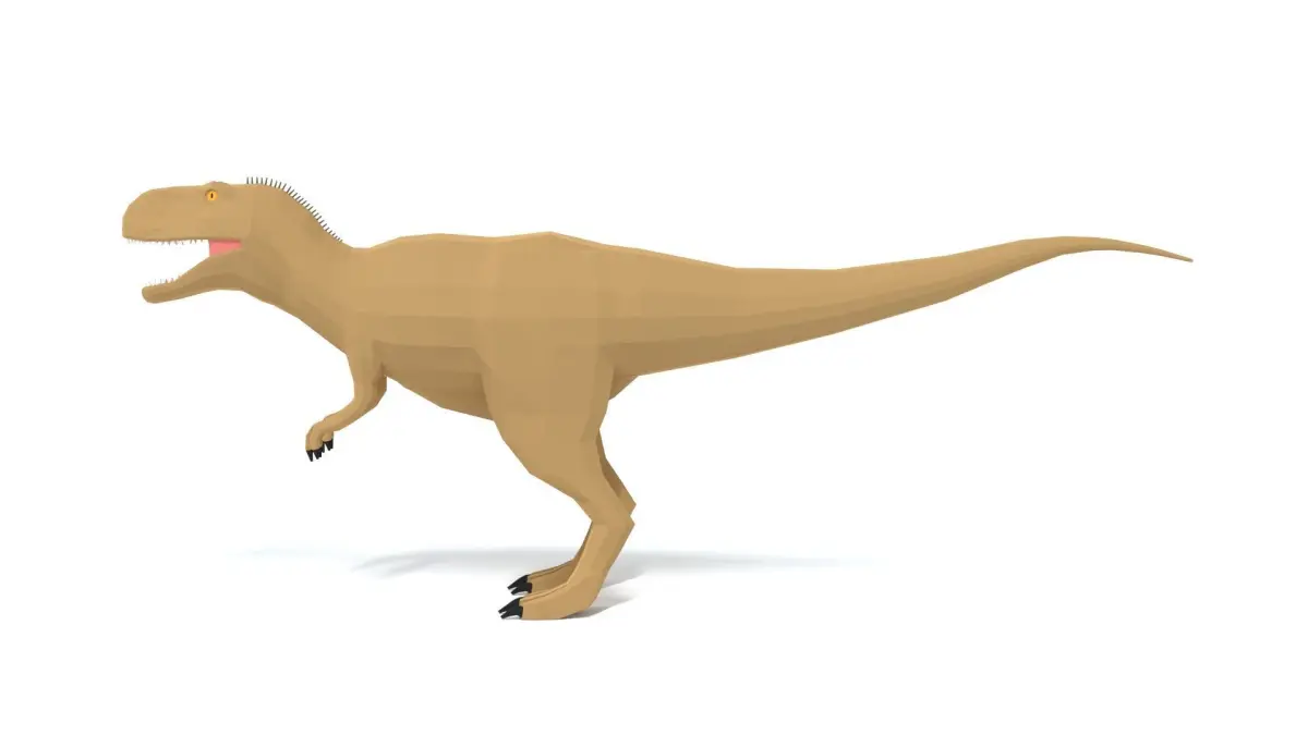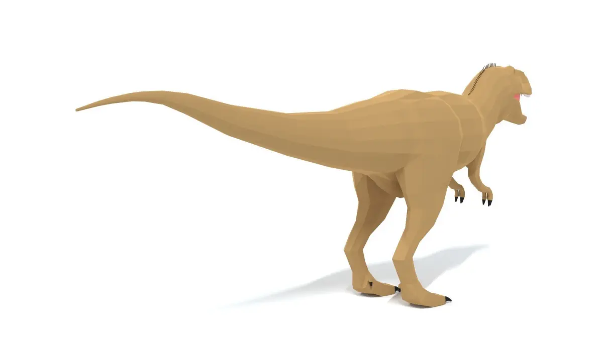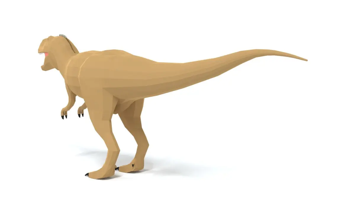 This is a low poly 3D model of an Abelisaurus Dinosaur. The low poly dinosaur was modeled and prepared for low-poly style renderings, background, general CG visualization presented as 1 mesh with quads only.