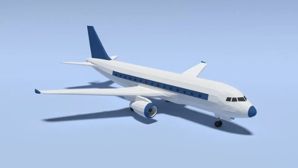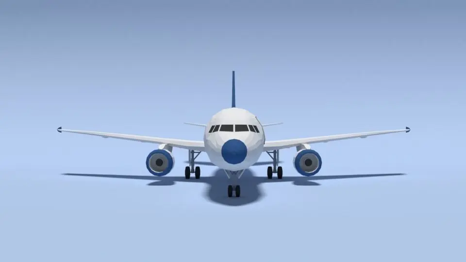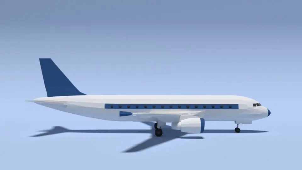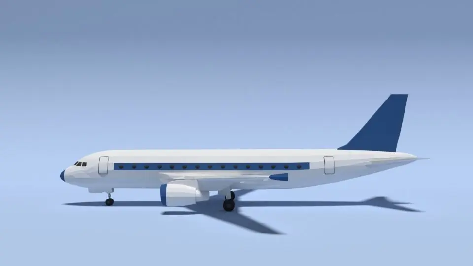 This is a low poly 3d model of an Airbus A320 airplane. The low poly airplane was modelled and prepared for low-poly style renderings, background, general CG visualization presented as a mesh with quads only.