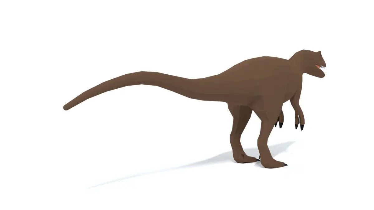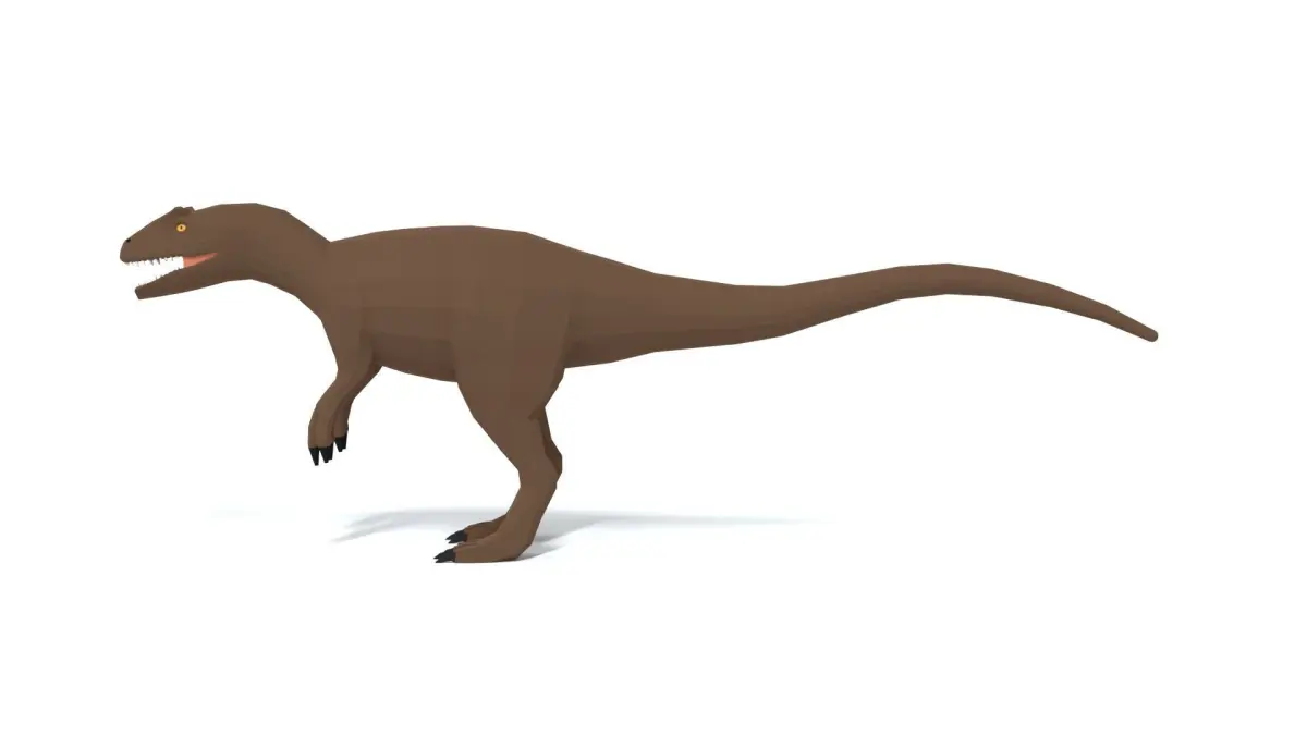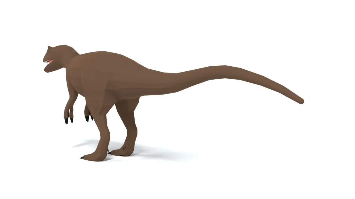 This is a low poly 3D model of an Allosaurus Dinosaur. The low poly dinosaur was modeled and prepared for low-poly style renderings, background, general CG visualization presented as 1 mesh with quads only.