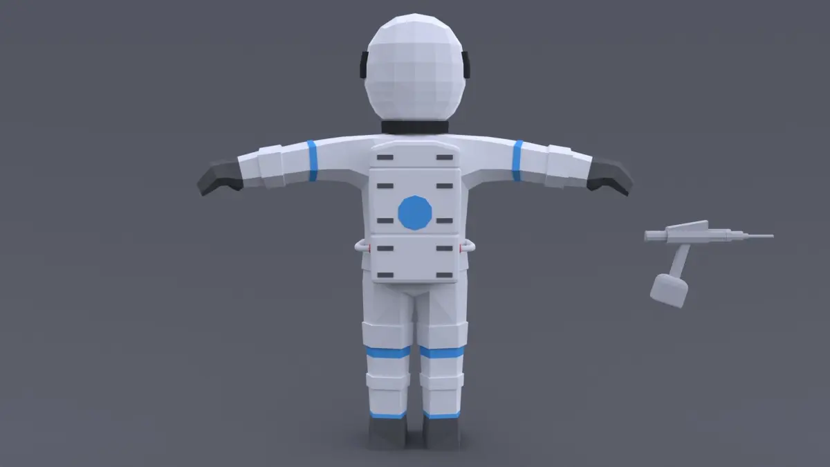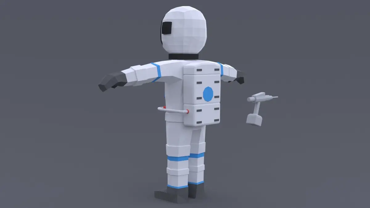 Τhis is a low poly 3D model of an Astronaut. The low poly astronaut was modeled and prepared for low-poly style renderings, background, general CG visualization presented as 2 meshes with quads/tris. The pistol grip tool is a seperate object.