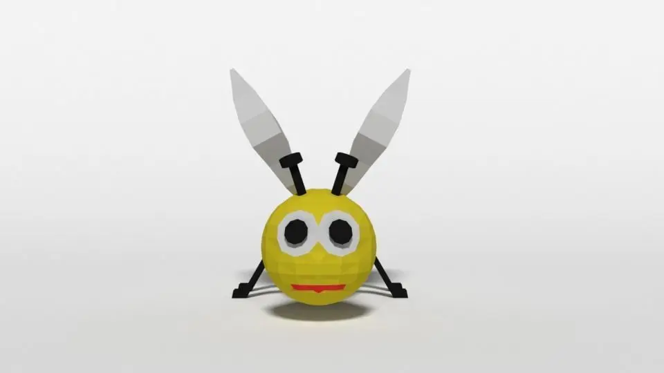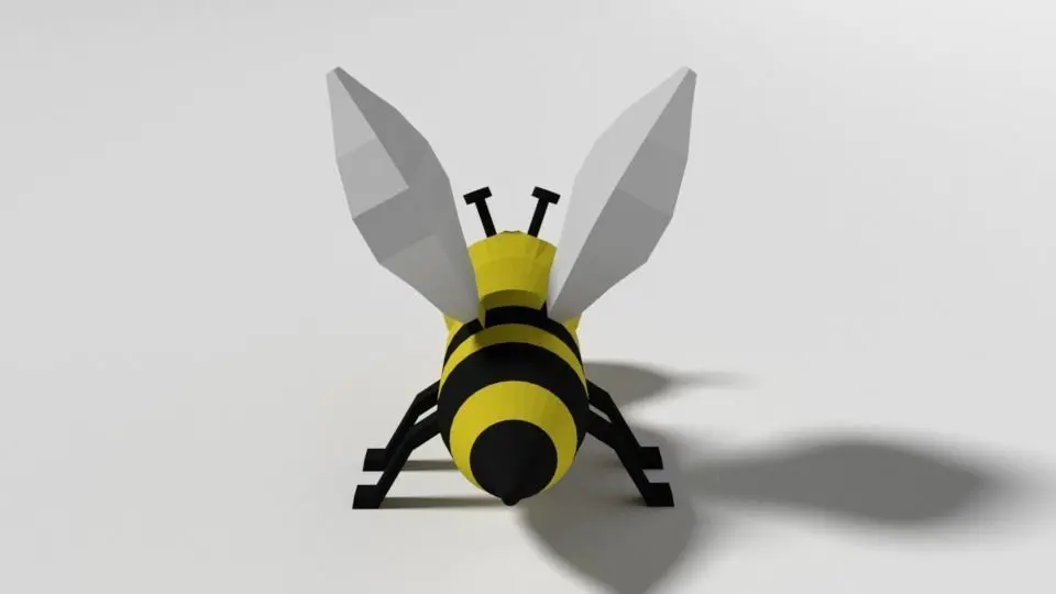 This is a low poly 3d model of a bee toy. The 3d bee was modeled and prepared for low-poly style renderings, background, general CG visualization presented as a mesh with quads/tis.