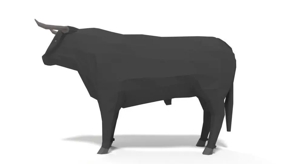 This is a low poly 3d model of a bull. The low poly bull was modelled and prepared for low-poly style renderings, background, general CG visualization.