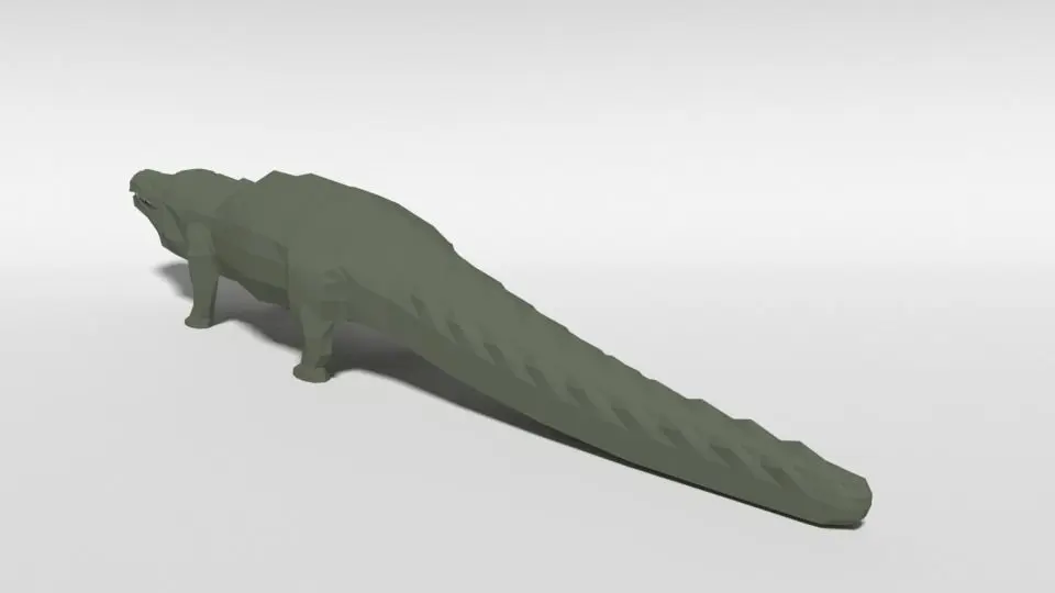 This is a low poly 3D model of a crocodile. The low poly crocodile was modeled and prepared for low-poly style renderings, background, general CG visualization presented as a mesh with quads only.