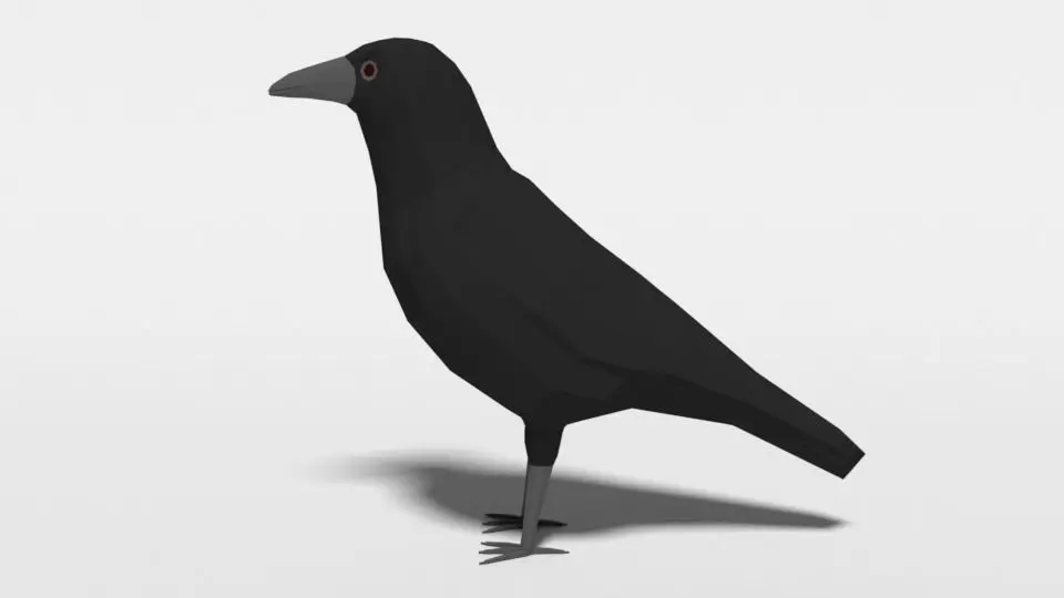 This is a low poly 3D model of a crow. The low poly crow was modeled and prepared for low-poly style renderings, background, general CG visualization presented as a mesh with quads only.