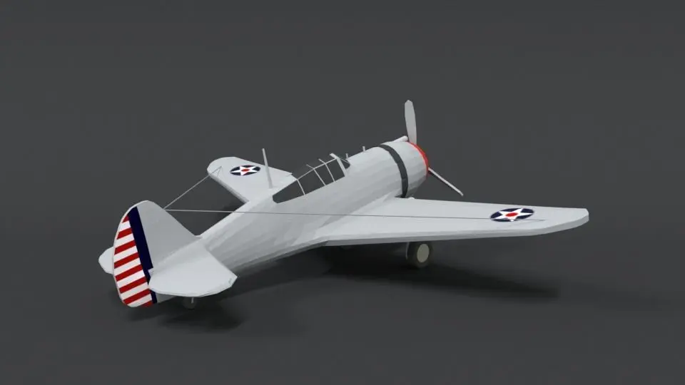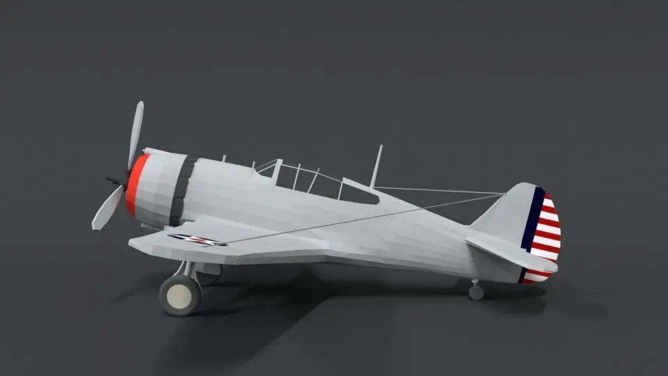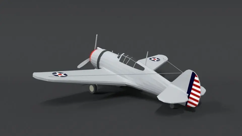 This is a low poly 3d model of a Curtiss P 36 Hawk WII Airplane. The low poly airplane was modeled and prepared for low-poly style renderings, background, general CG visualization presented as 1 mesh with quads only.
