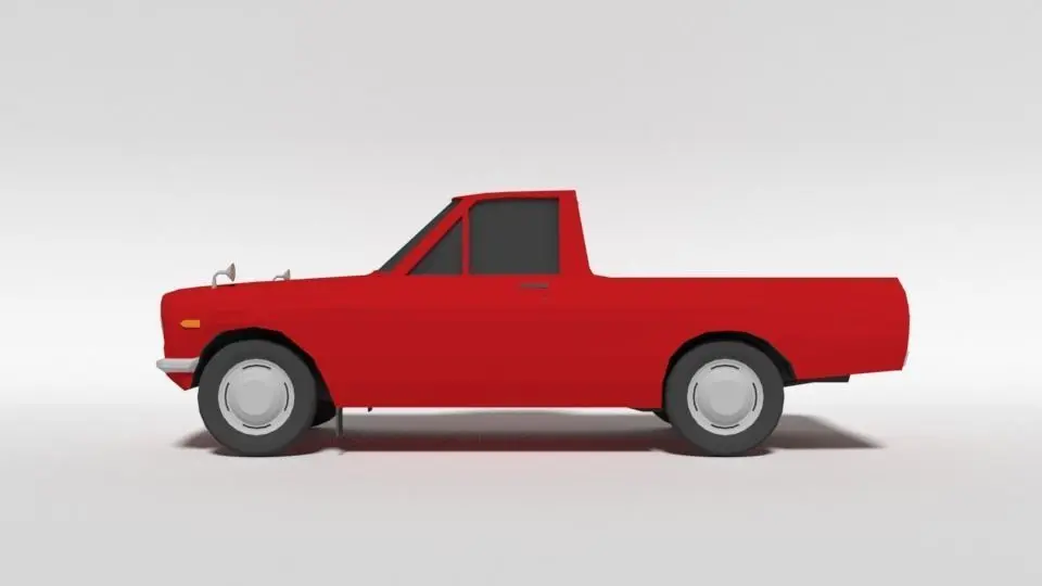 This is a low poly 3d model of a Datsun 1000 Pickup B20 1696 car. The low poly car was modelled and prepared for low-poly style renderings, background, general CG visualization presented as a mesh with quads only.