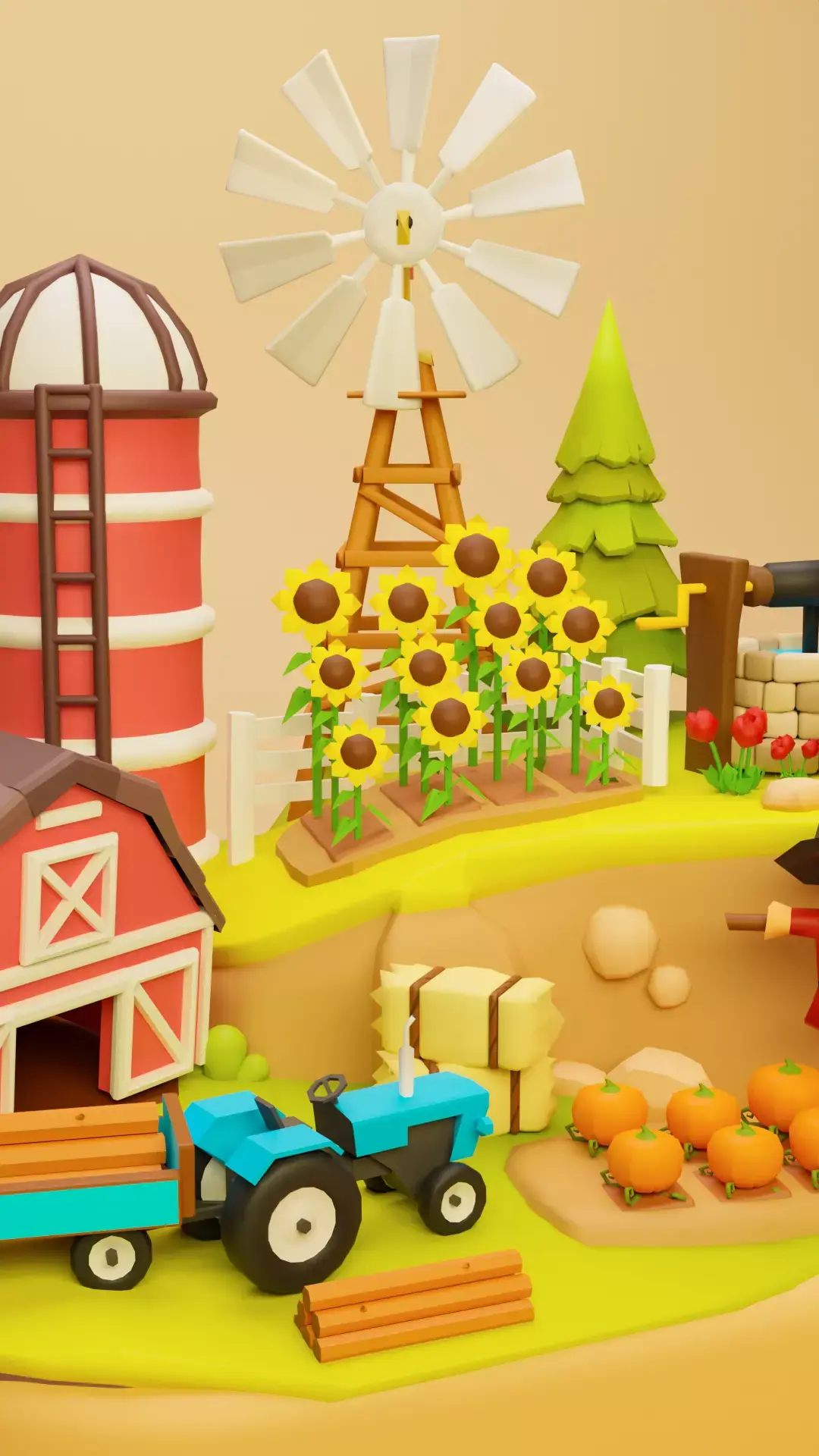 This is a complete and vibrant low-poly 3D model of a classic cartoon farmhouse and rural scene. The stylized, cheerful design makes it ideal for mobile games, educational content, casual simulation games, children's animations, or any project that requires a friendly and optimized farm environment.