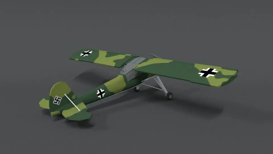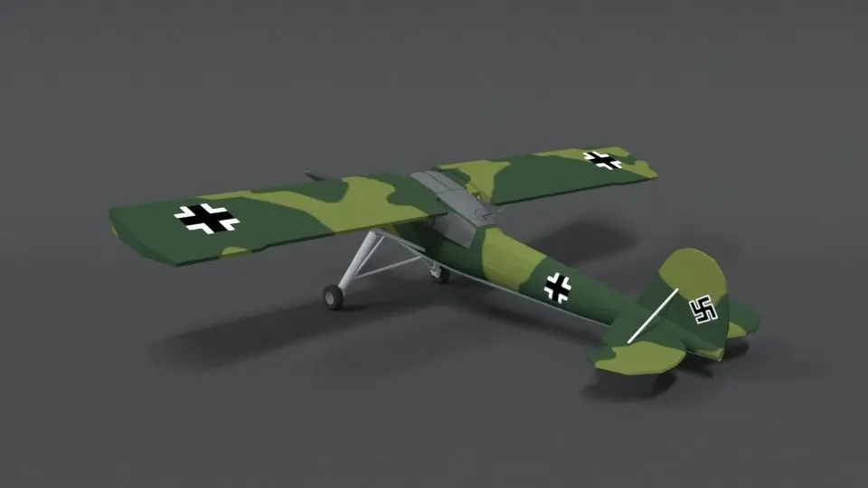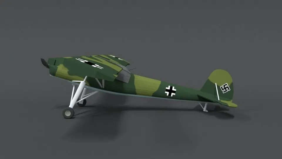 This is a low poly 3d model of a Fieseler Fi 156 Storch WWII Airplane. The low poly airplane was modeled and prepared for low-poly style renderings, background, general CG visualization presented as 1 mesh with quads only.