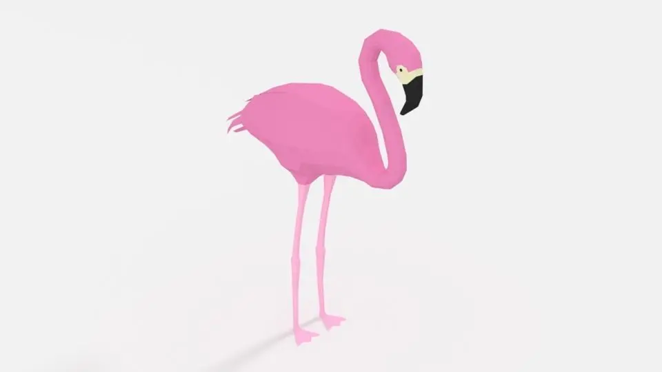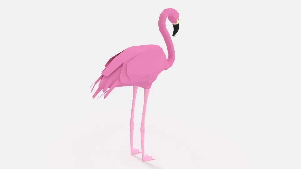 This is a low poly 3d model of a flamingo. The low poly flamingo was modeled and prepared for low-poly style renderings, background, general CG visualization.