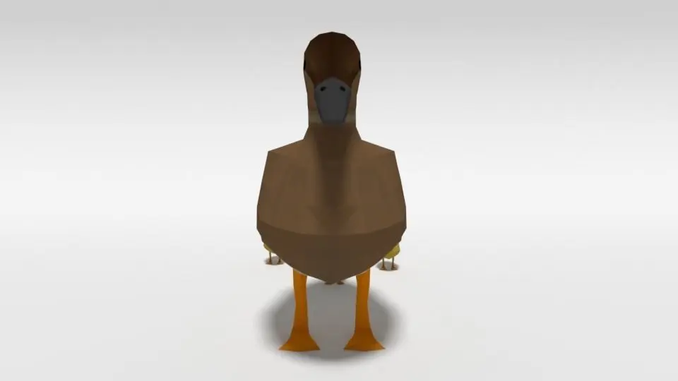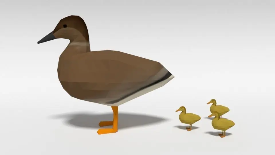Hand painted diffuse texture for the duck is included, UV unwrap and mapping is available. The ducklings have simple materials with diffuse colors.