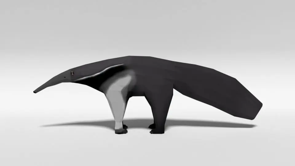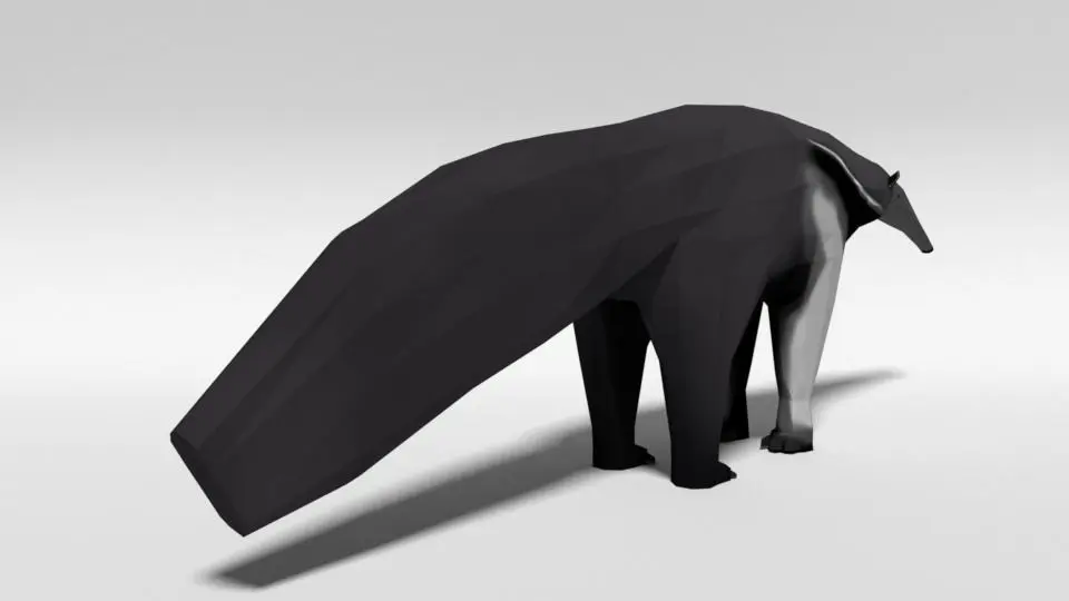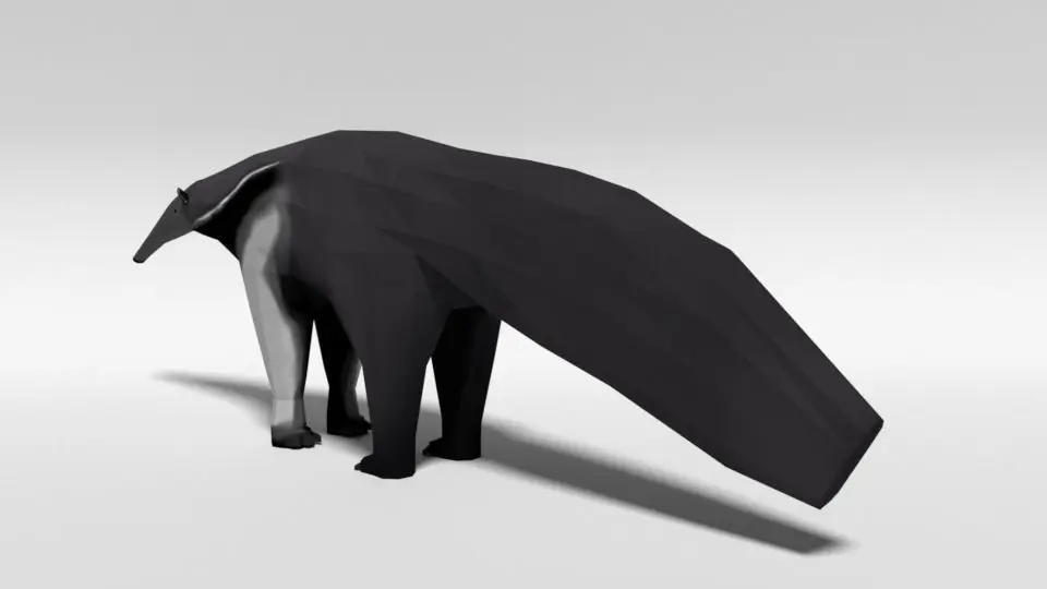 This is a low poly 3d model of a giant anteater. The low poly anteater was modeled and prepared for low-poly style renderings, background, general CG visualization presented as a mesh with quads only.