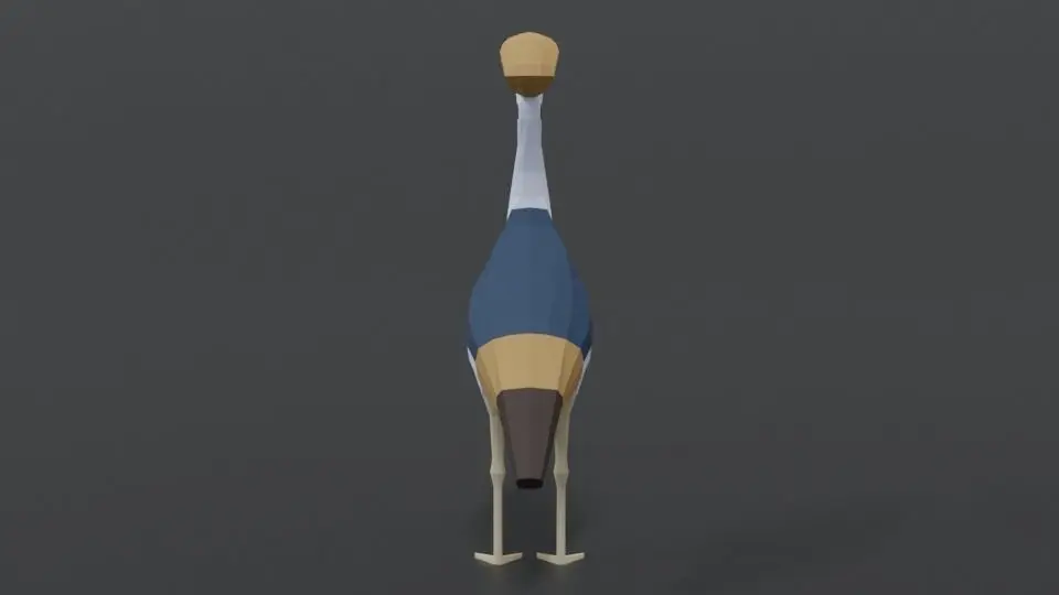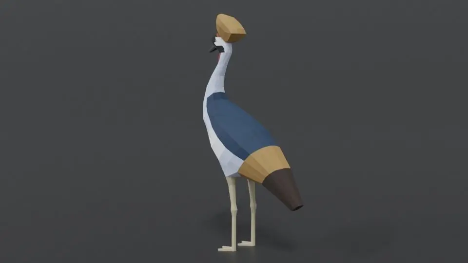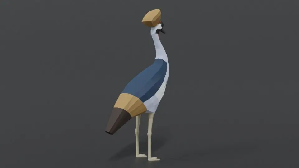 his is a low poly 3D model of a Grey Crowned Crane. The low poly bird was modeled and prepared for low-poly style renderings, background, general CG visualization presented as a mesh with quads only.