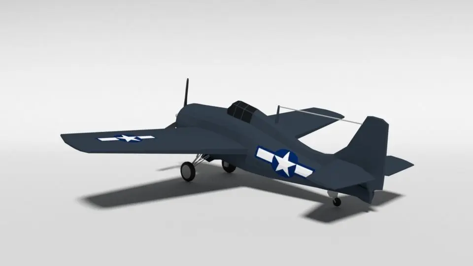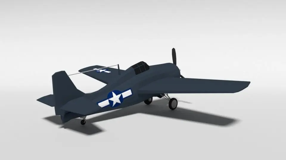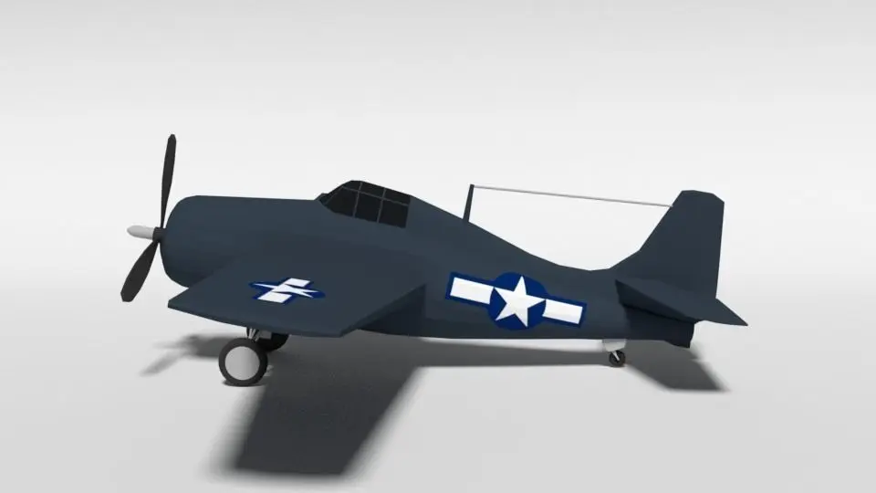 This is a low poly 3d model of a Grumman General Motors FM-2 Wildcat WWII Airplane. The low poly airplane was modeled and prepared for low-poly style renderings, background, general CG visualization presented as 1 mesh with quads only.