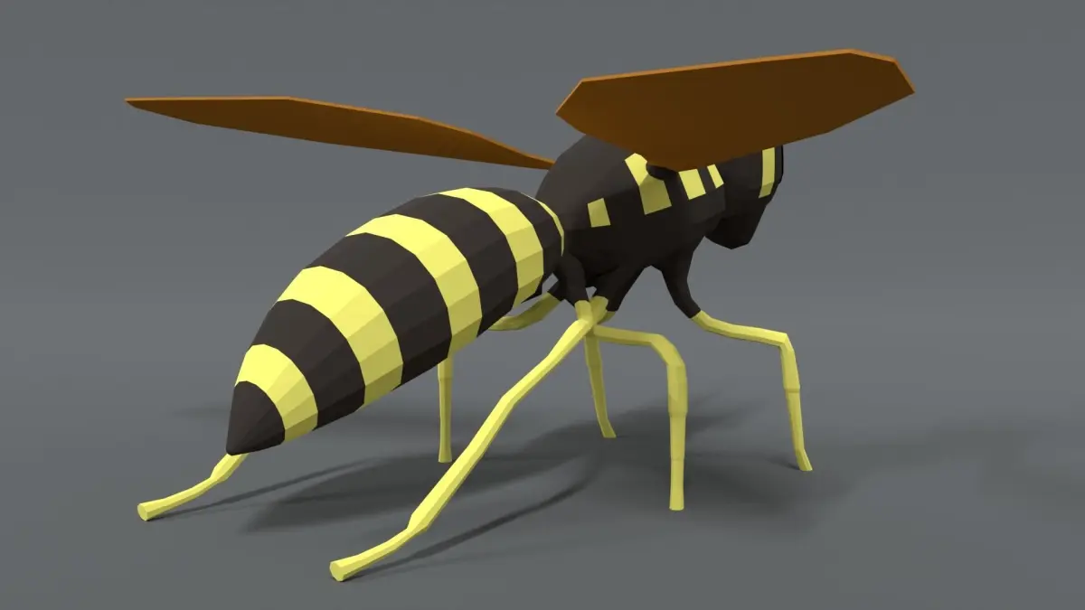 This is a low poly 3D model of a Hornet. The low poly Hornet was modeled and prepared for low-poly style renderings, background, general CG visualization presented as 1 mesh with quads only.