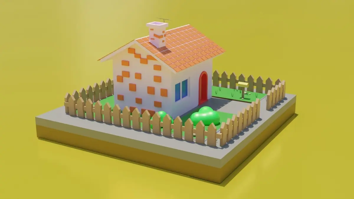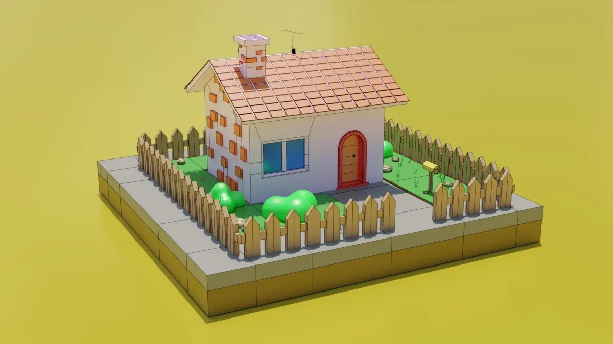 This is the modela cartoon house, but not only the house itself is included in this model, but everything that is on the render.