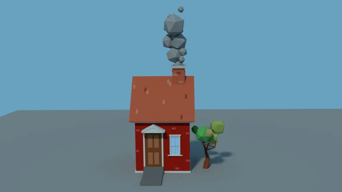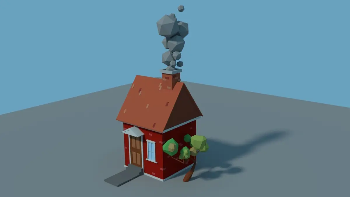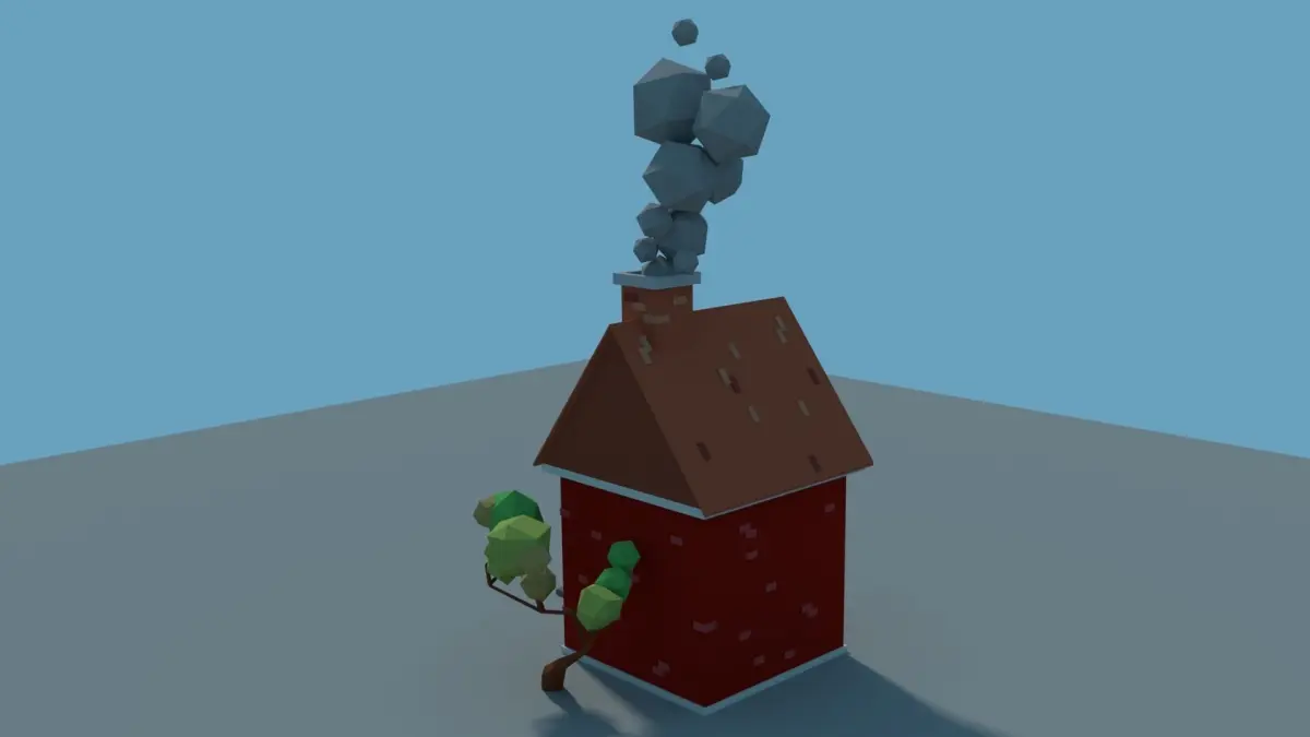 Low poly cartoony cute house with bricks. Smoke emits from the chimney. Also has a tree near it. Feel free to separate the parts or the tree and use individually.