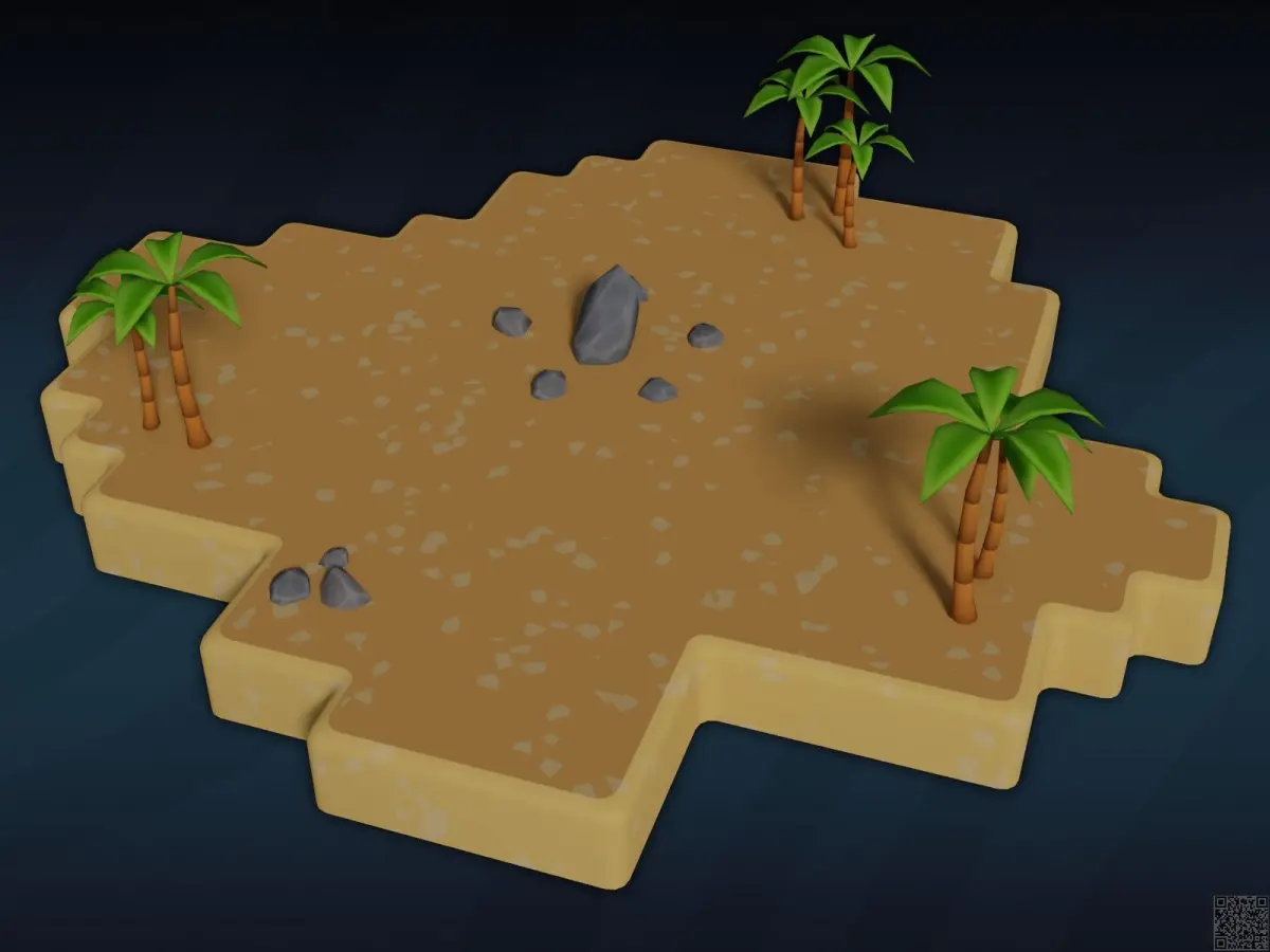 Cartoon islands pack: 6 diffirent islands + 6 diffirent rocks + 1 palm tree - (with base mesh for game colliders)