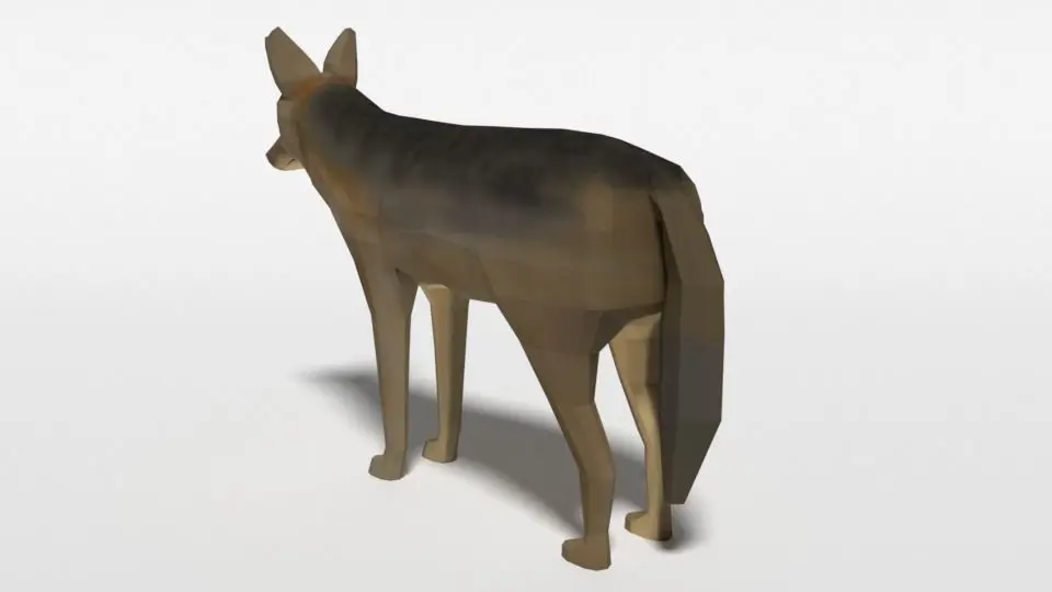 This is a low poly 3d model of a jackal. The low poly jackal was modeled and prepared for low-poly style renderings, background, general CG visualization presented as a mesh with quads only.