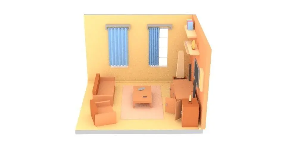 cartoon, livingroom, pigart, flat, low-poly, game-ready, bedroom, paper,toy,bed,computer,room,table,monitor,pc,interior,carpet,pillow,photoframes,houseware,window,cabinet,tv,architectural,decoration,print,printable