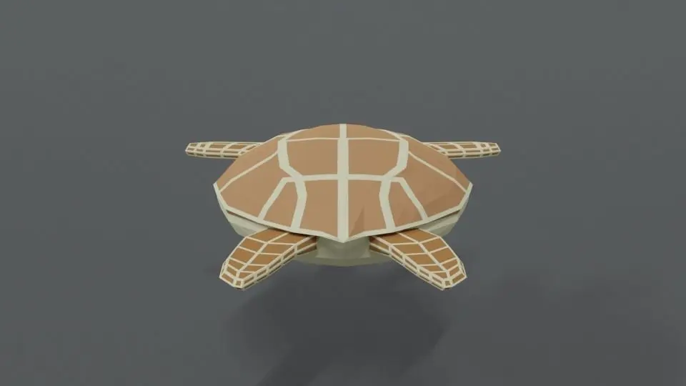 This is a low poly 3D model of a Loggerhead Sea Turtle. The low poly turtle was modeled and prepared for low-poly style renderings, background, general CG visualization presented as a mesh with quads only.