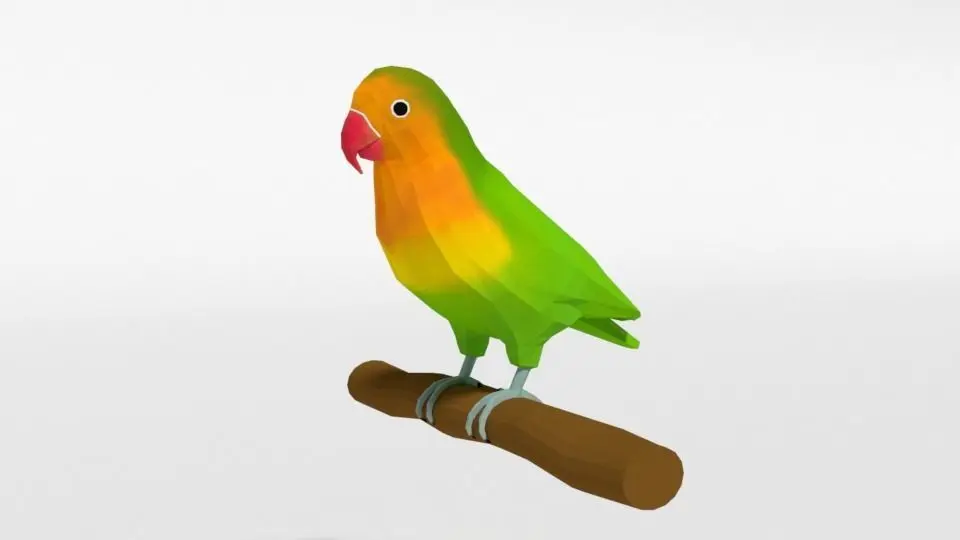 This is a low poly 3d model of 3 lovebirds. The low poly birds was modeled and prepared for low-poly style renderings, background, general CG visualization presented as 3 meshes with quads only.