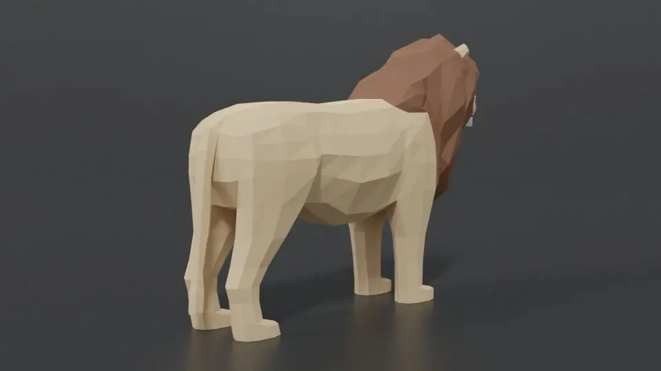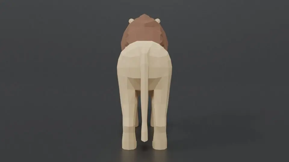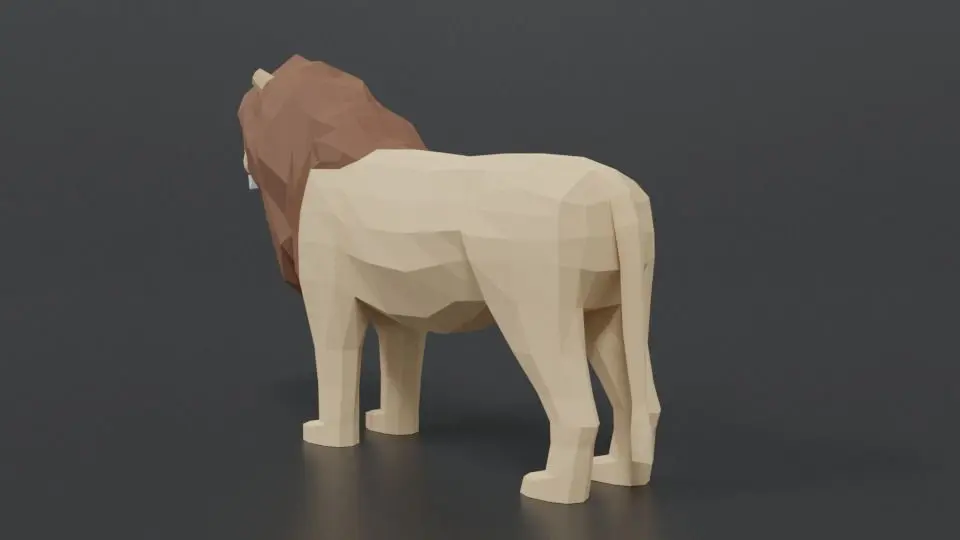This is a low poly 3D model of a male lion. The low poly lion was modeled and prepared for low-poly style renderings, background, general CG visualization presented as a mesh with quads only.