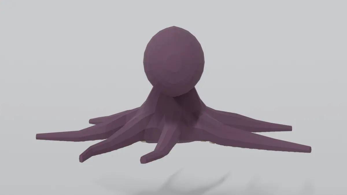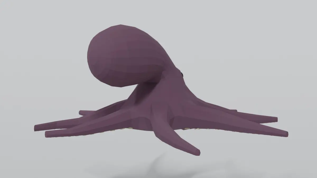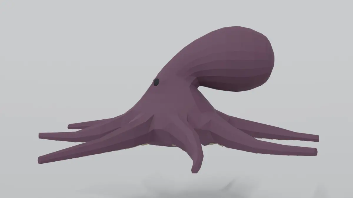 This is a low poly 3D model of an Octopus. The low poly octopus was modeled and prepared for low-poly style renderings, background, general CG visualization presented as 1 mesh with quads/tris.