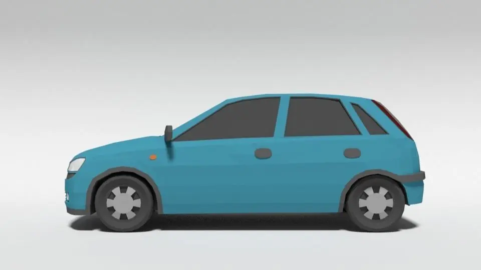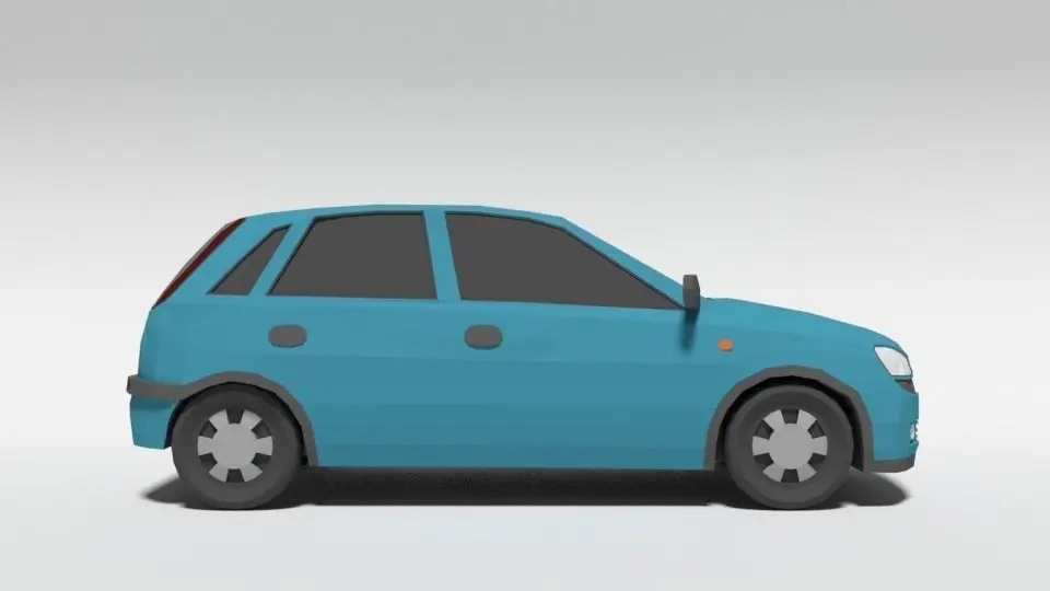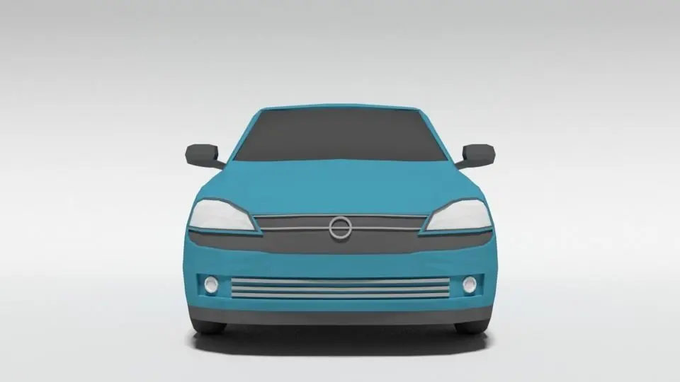 This is a low poly 3d model of an Opel Corsa C car. The low poly car was modelled and prepared for low-poly style renderings, background, general CG visualization presented as a mesh with quads only.