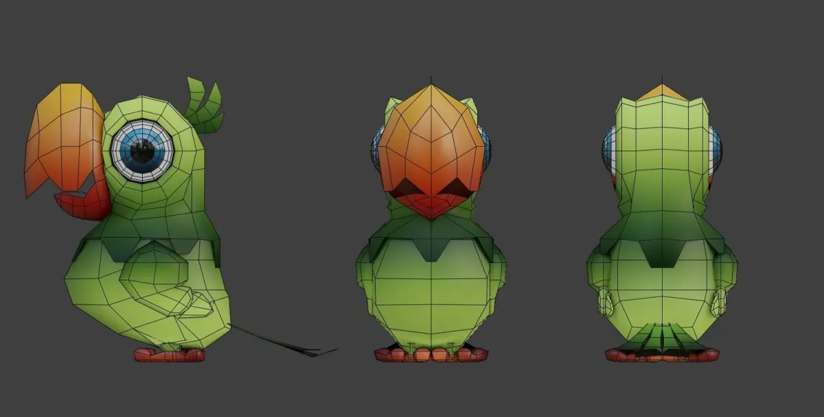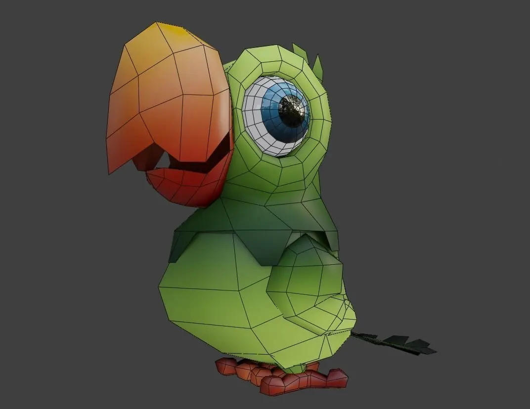 Papagaio Cartum Low-Poly modelado no Blender 2.82.