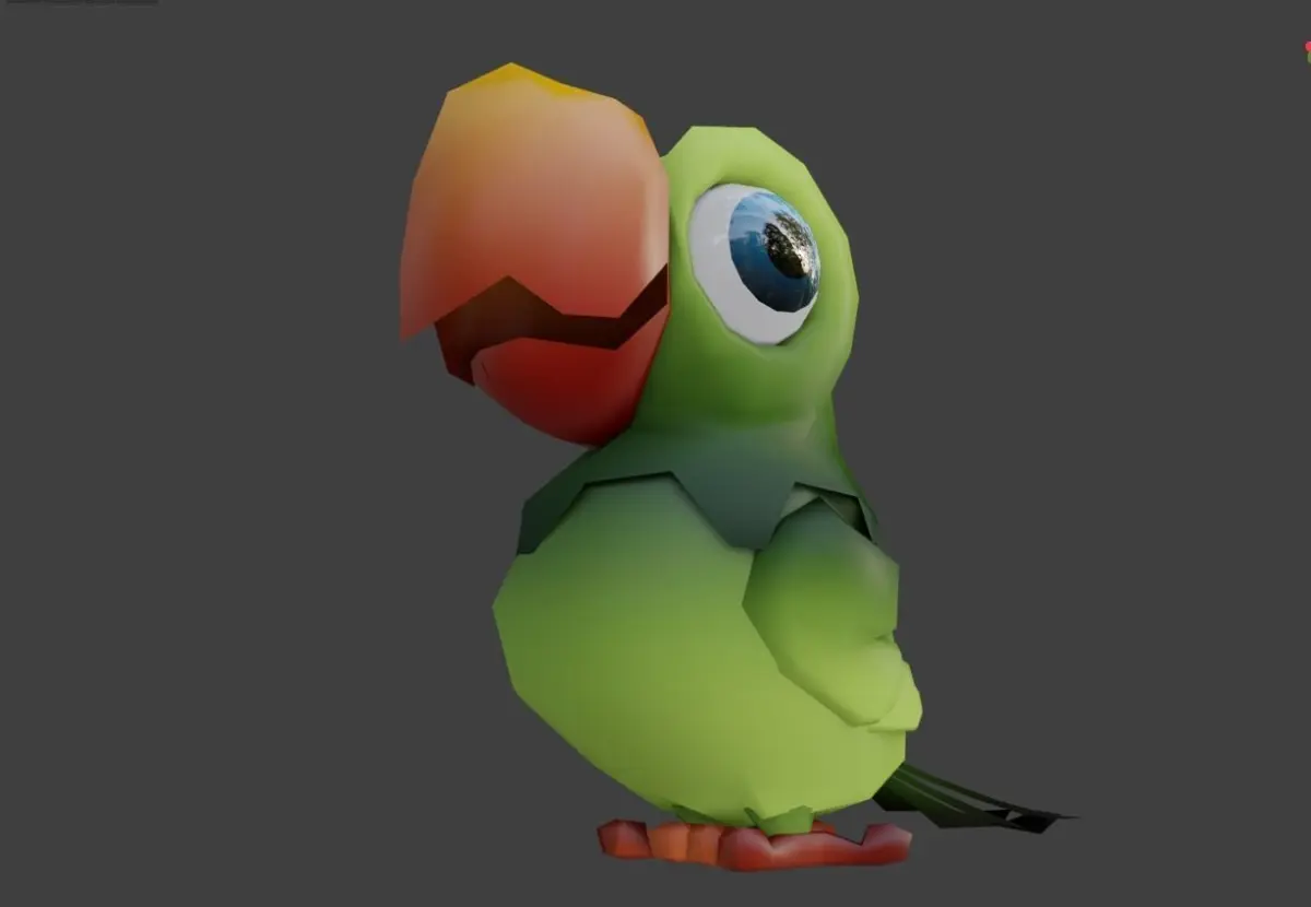 Low Poly Cartoon Parrot modeled in Blender 2.82.