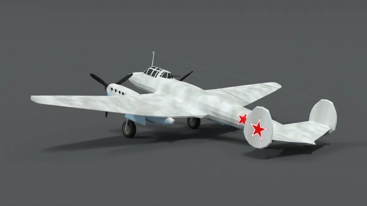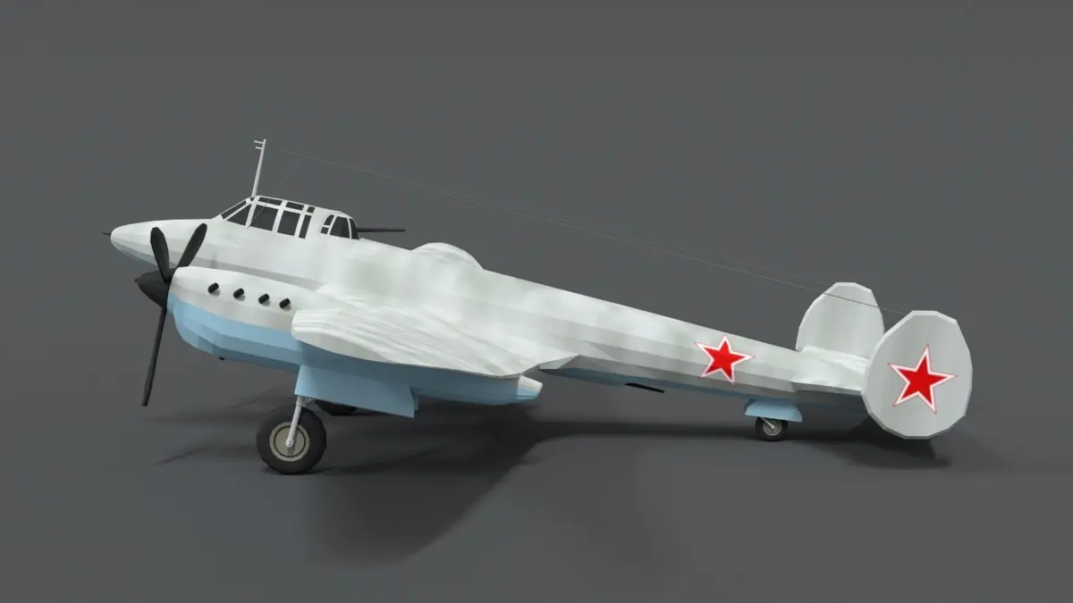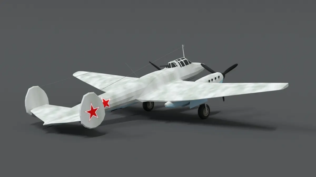 This is a low poly 3d model of a Petlyakov Pe-2 WWII Russian Airplane. The low poly airplane was modeled and prepared for low-poly style renderings, background, general CG visualization presented as 1 mesh with quads/tris.
