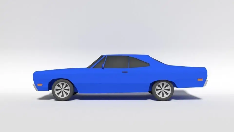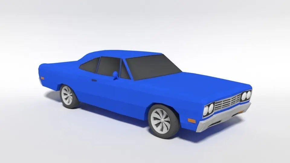 This is a low poly 3d model of a Plymouth Roadrunner car. The low poly car was modelled and prepared for low-poly style renderings, background, general CG visualization presented as a mesh with quads only.