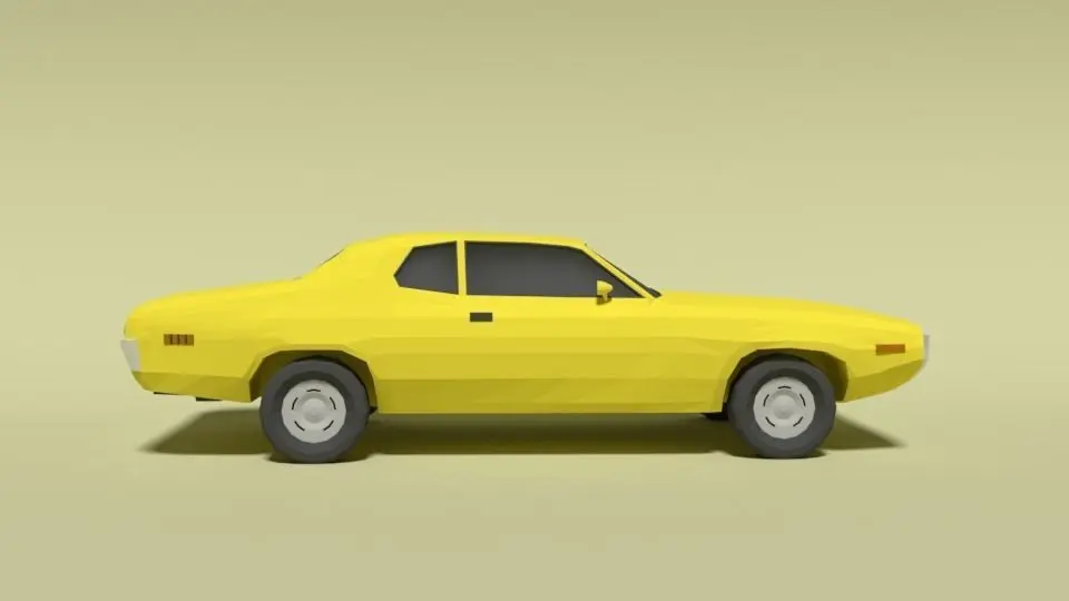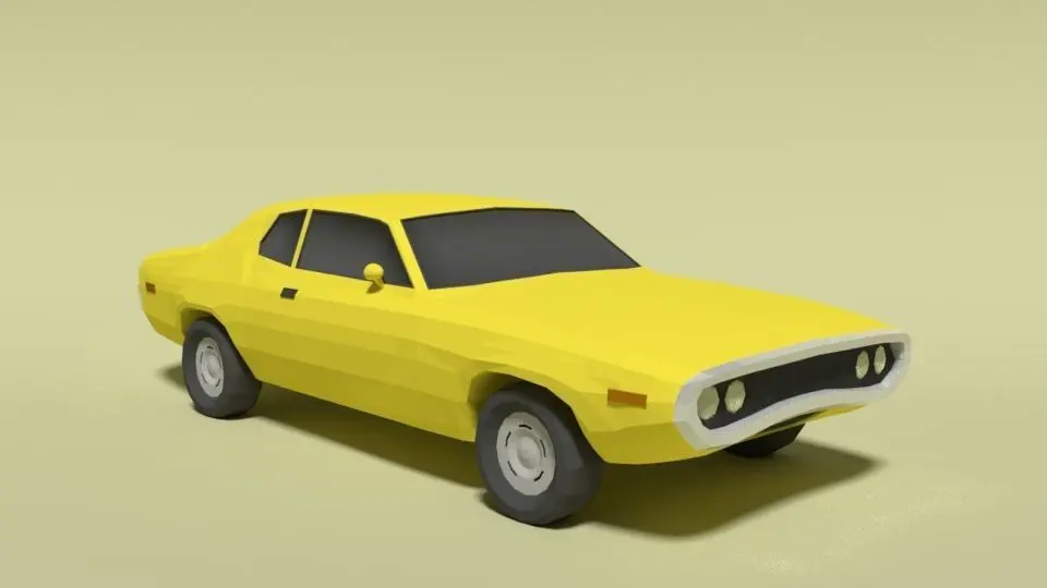 This is a low poly 3d model of a Plymouth Satellite Sebring 1971 car. The low poly car was modelled and prepared for low-poly style renderings, background, general CG visualization presented as a mesh with quads only.