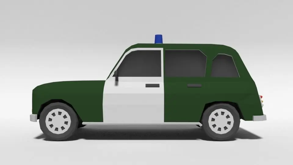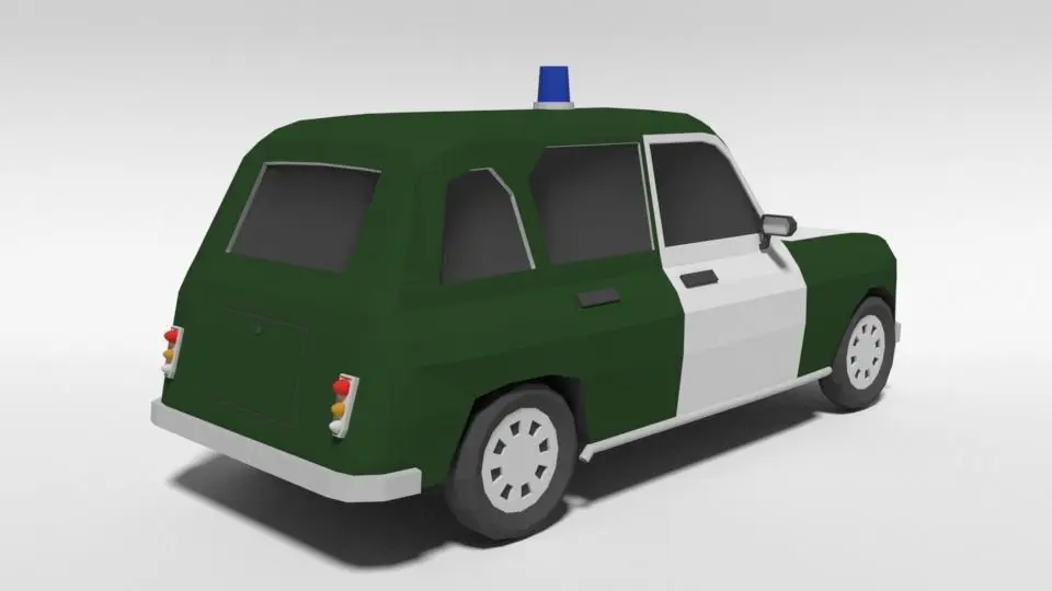 This is a low poly 3d model of a retro police car. The low poly car was modelled and prepared for low-poly style renderings, background, general CG visualization presented as a mesh with quads and few tris.