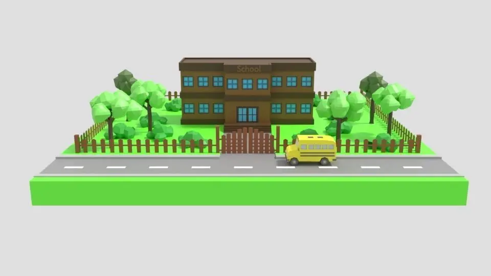 This is a low poly 3D model of a school scene. The low poly scene was modeled and prepared for low-poly style renderings, background, general CG visualization presented as a mesh with quads/tris/polygons.