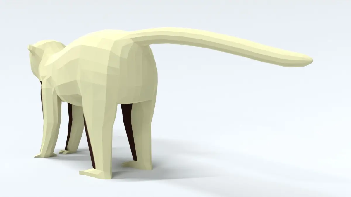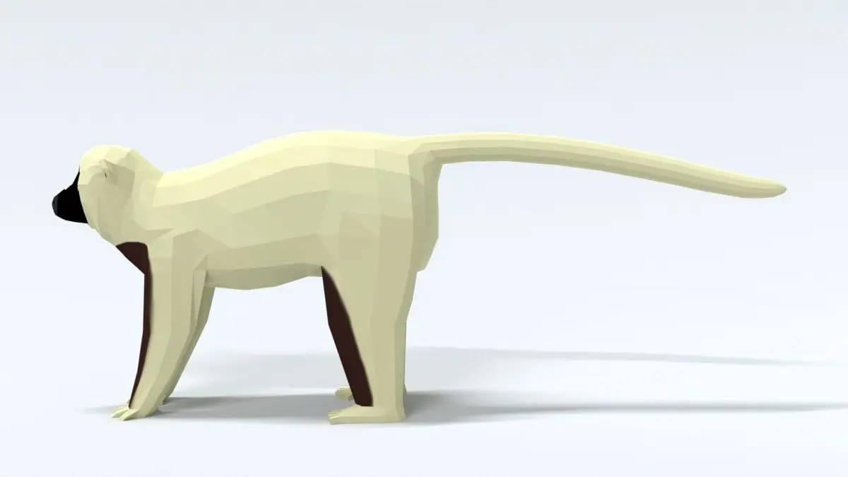 This is a low poly 3d model of a Sifaka Lemur. The low poly lemur was modeled and prepared for low-poly style renderings, background, general CG visualization presented as a mesh with quads only.