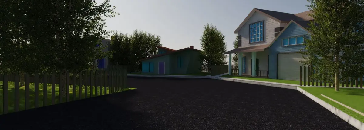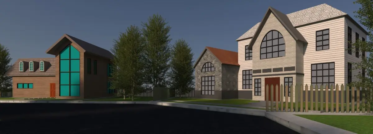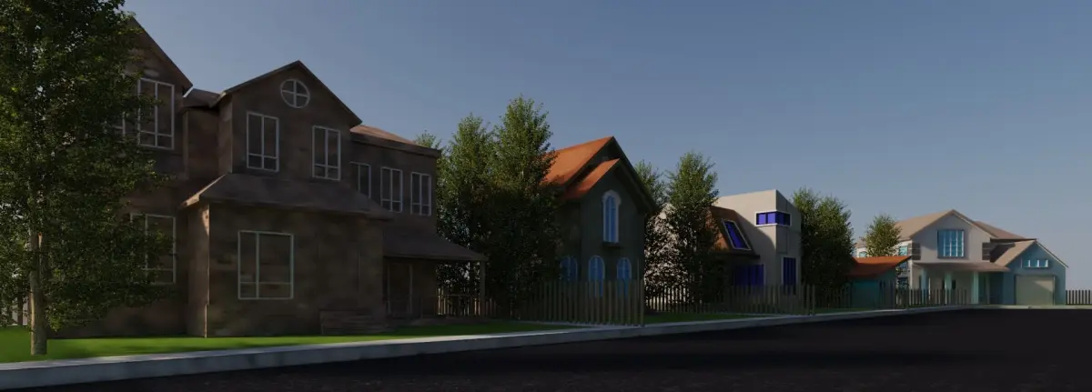low poly cartoon street view..file is little bit heavy because of trees and plantation..if you remove the plantation file will be reduced ..it's at human scale also unwrappped and High resolustion textured..the file is available in all formats. just ask for your requirement..each house/home have the 500 polygons max: just because of arched windows.