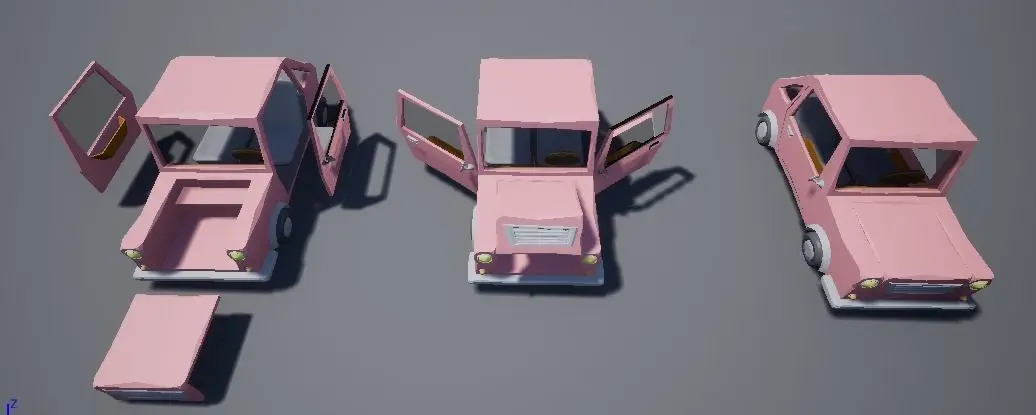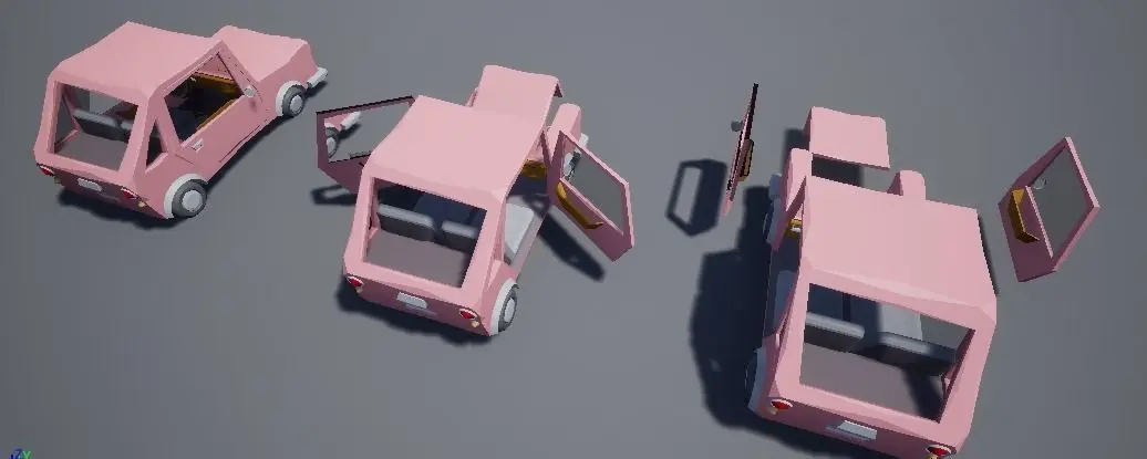 - Dynamic Car (Seperated into Chassis, Doors and Hood for animating)