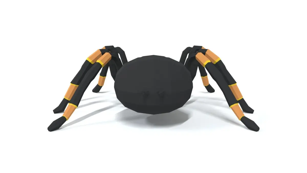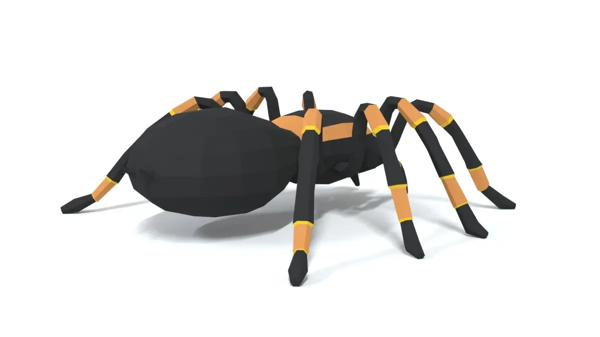 This is a low poly 3D model of a Tarantula. The low poly spider was modeled and prepared for low-poly style renderings, background, general CG visualization presented as 1 mesh with quads only.