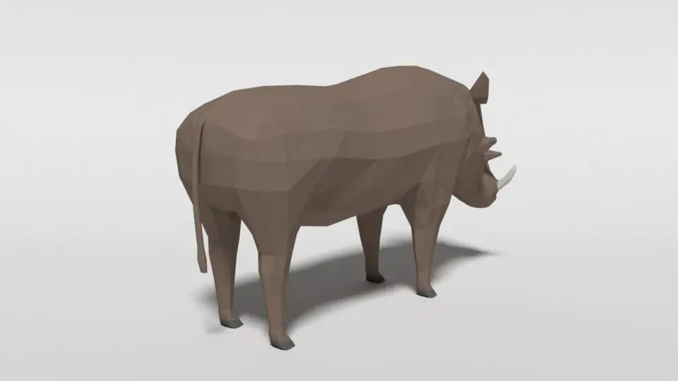 This is a low poly 3D model of a Warthog. The low poly Warthog was modeled and prepared for low-poly style renderings, background, general CG visualization presented as a mesh with quads only.
