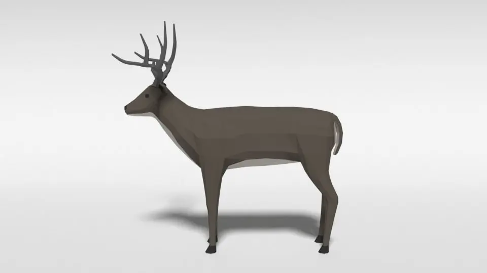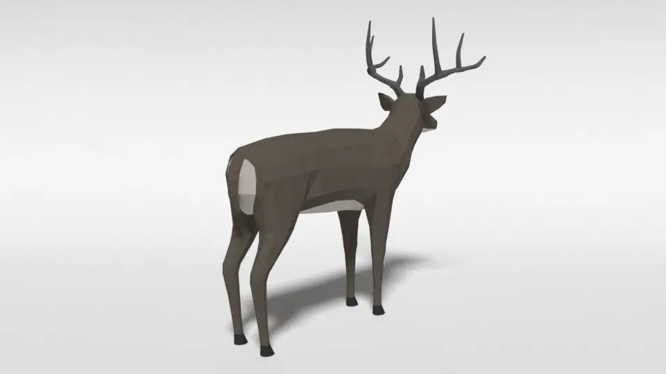 This is a low poly 3D model of a White-tailed Deer . The low poly Deer was modeled and prepared for low-poly style renderings, background, general CG visualization presented as a mesh with quads only.