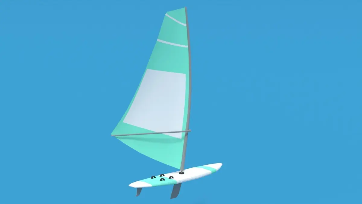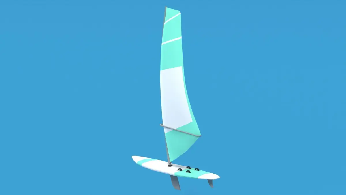 This is a low poly 3D model of a windsurf. The low poly windsurf was modeled and prepared for low-poly style renderings, background, general CG visualization presented as 2 meshes with quads only.The board and the sail are seperate meshes.