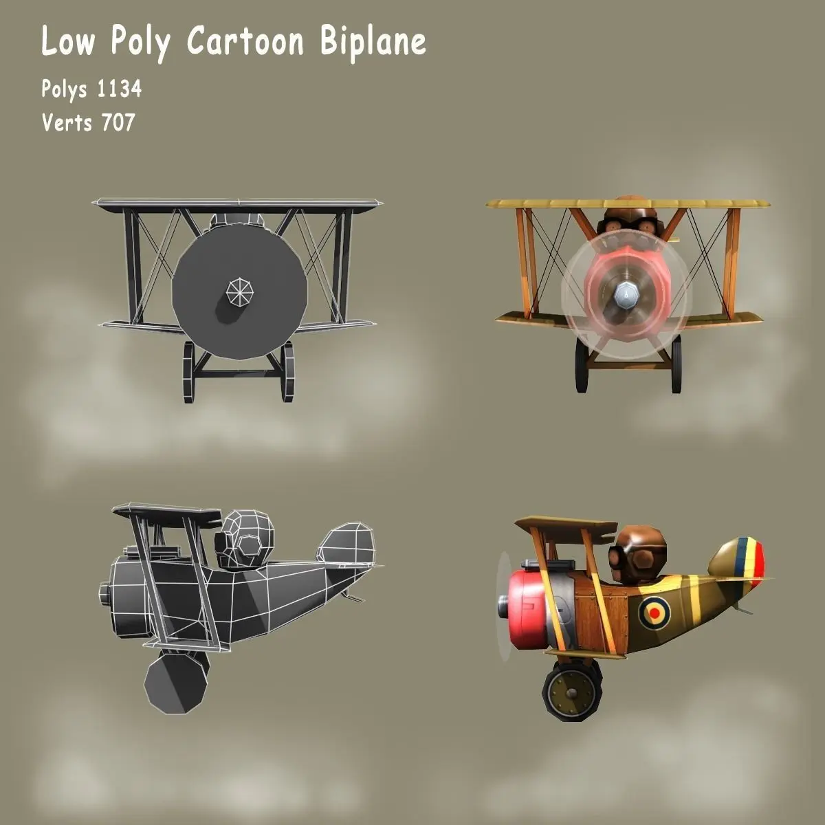 Low poly cartoon WW1 biplane Low-poly 3D model