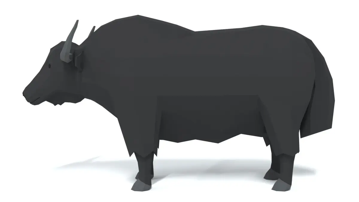 This is a low poly 3D model of a Yak. The low poly Yak was modeled and prepared for low-poly style renderings, background, general CG visualization presented as 1 mesh with quads only.