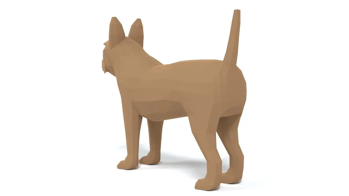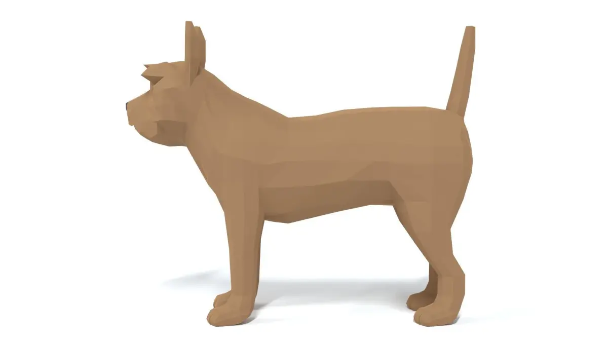 This is a low poly 3D model of a Yorkshire Terrier. The low poly dog was modeled and prepared for low-poly style renderings, background, general CG visualization presented as 1 mesh with quads only.