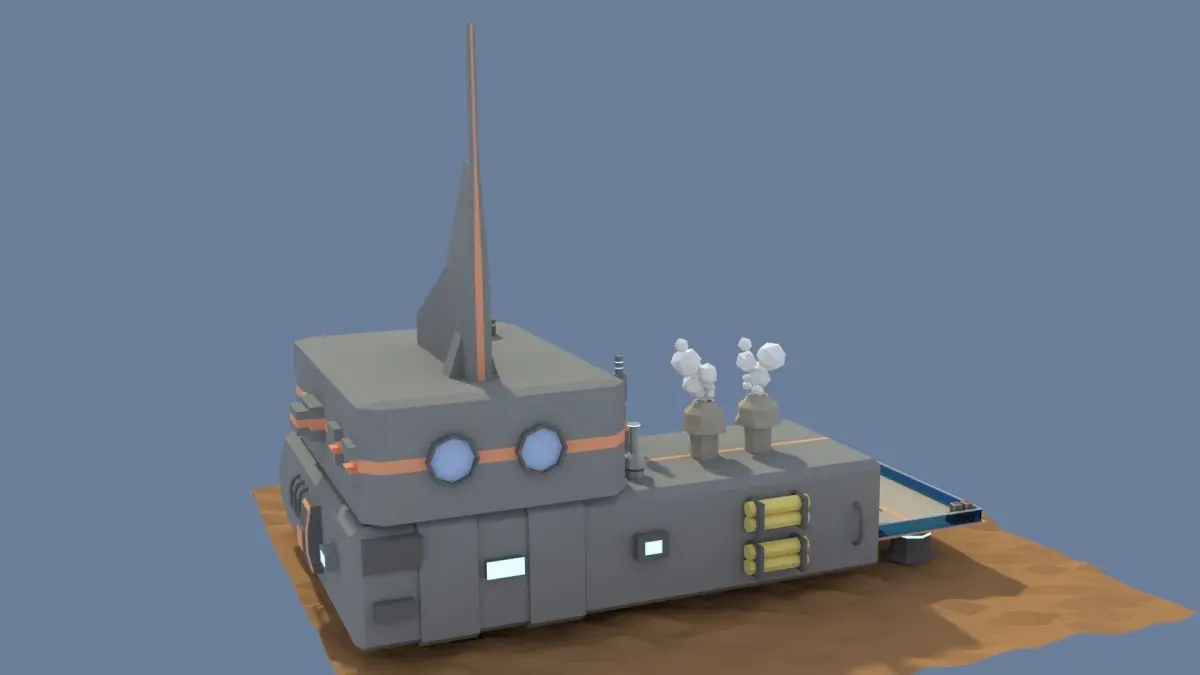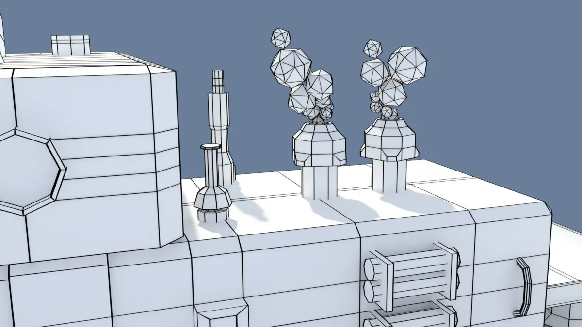 Fantasy model of a two story building for a space scene. You can separate the objects(towers, rails, ladders) and use them separately anywhere you want.