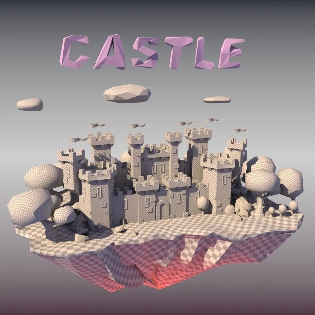 HomeCatalogLOW POLY CASTLE trees stones ground Low-poly 3D model